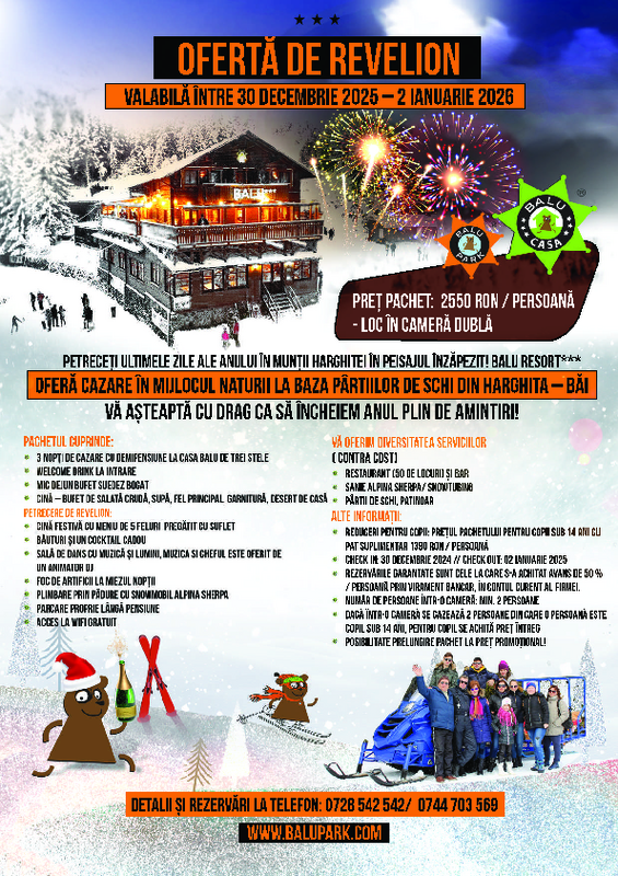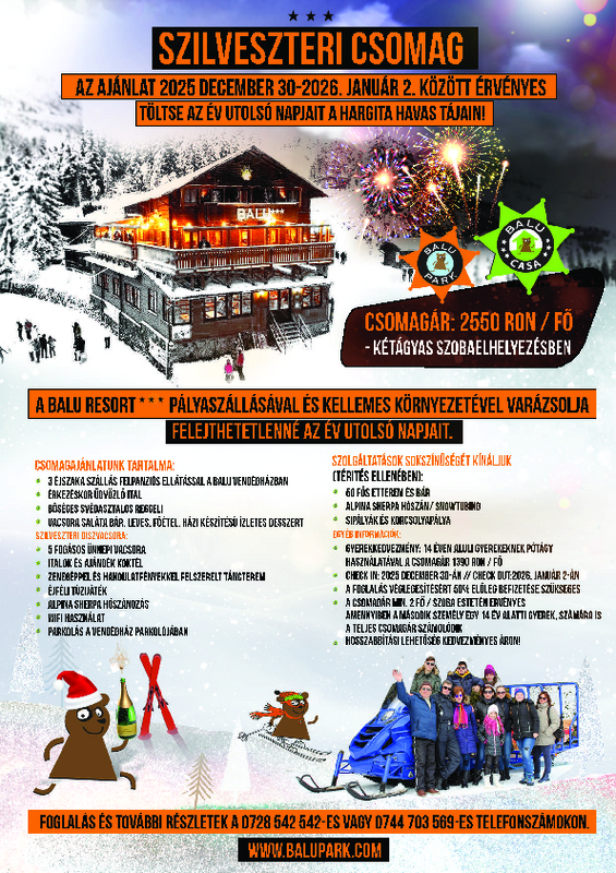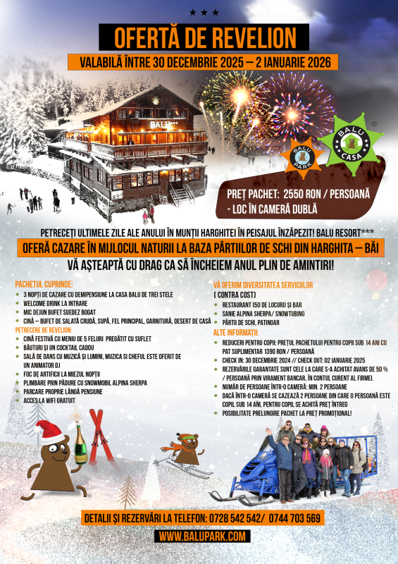 Cabana şi Restaurant Balu*** : (+40) 728.542.542 Parc Aventură Balu : (+40) 755.202.201